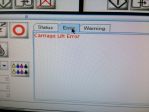 I've never seen this before but I can give you a little info that you may or may not already know. When you first turn on the machine the carriage lifts to its highest point. That is why the heads are always uncapped when you first turn the machine on. I would inspect the connections around the worm screw that regulates the carriage height. I'm not exactly sure what drives this system but I believe it uses air pressure. If you've ever turned the machine off when in maintenance position you would notice it falling slowly as if its losing air pressure. Check for an air line to inspect as well as any other electrical connection such as possibly a solenoid which would regulate the air pressure.